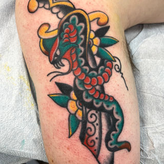 Randy Driver is an experienced tattoo artist who began in Denver, Colorado in 2014. He is skilled in a wide range of tattooing styles, but he has a deep passion for the timeless artistry of American Traditional tattooing. Randy has been creating ageless art using bold, clean lines and vibrant colors that depict time-honored history, beauty, and love.